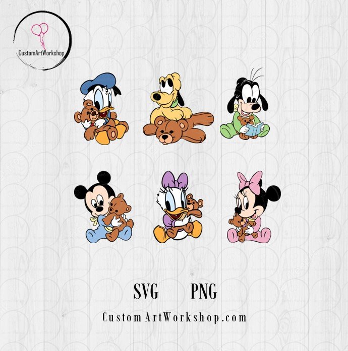 Baby Mickey & Friends with Teddy Bear Clipart Instant Download