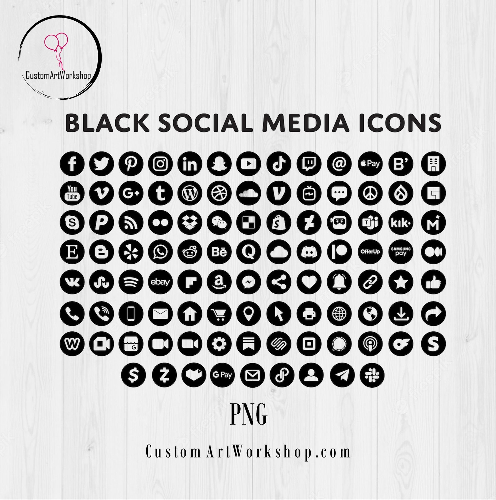 Black Social Media Icons Digital File Instant Download