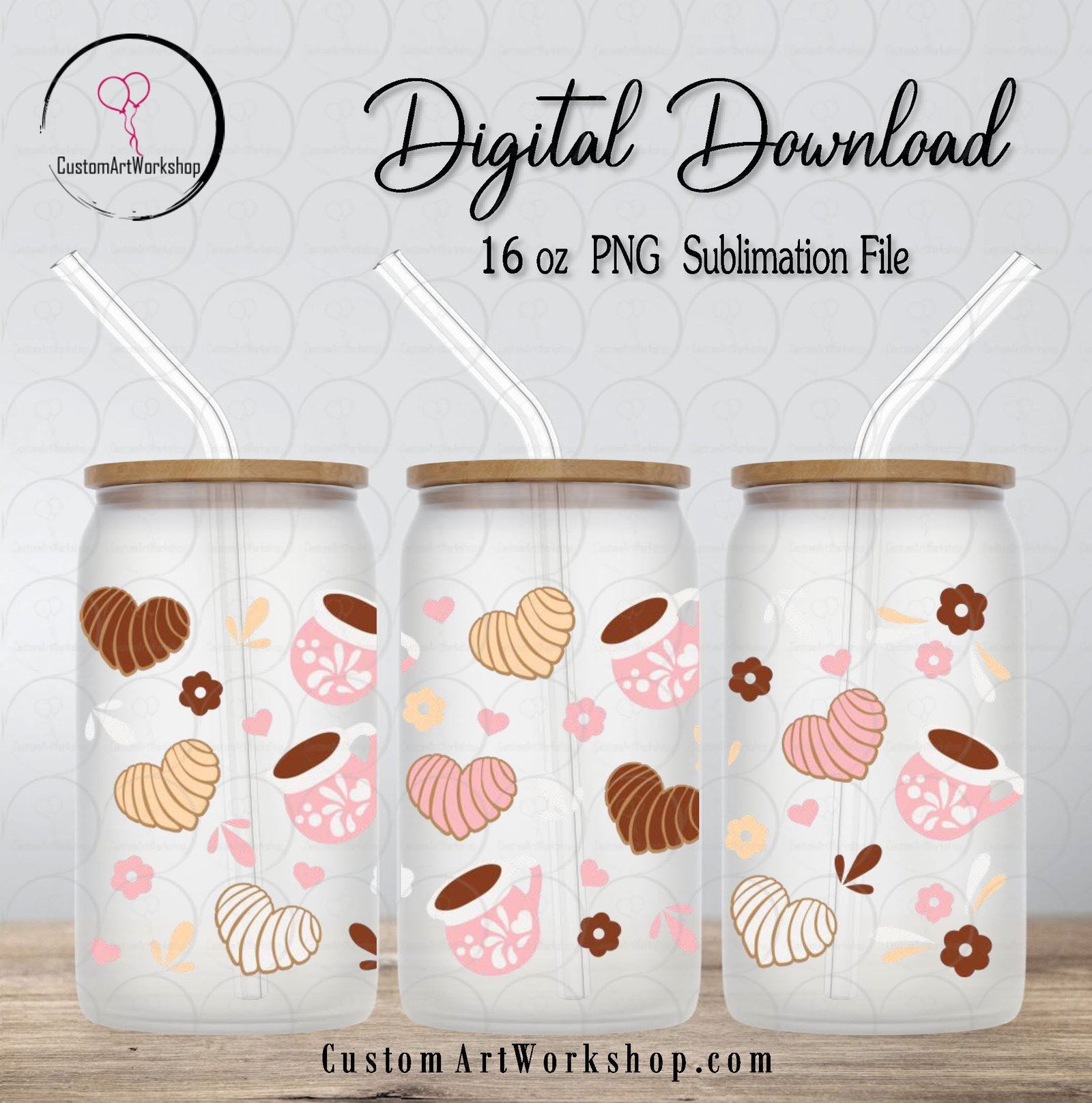 Concha Cafecito y Chisme Glass Can Wrap Instant Download