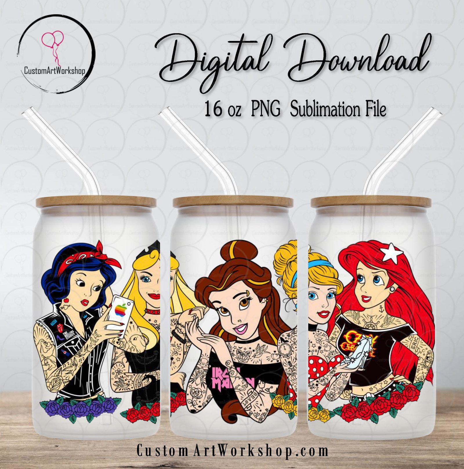 Disney Princess Tattoed Glass Can Wrap Instant Download