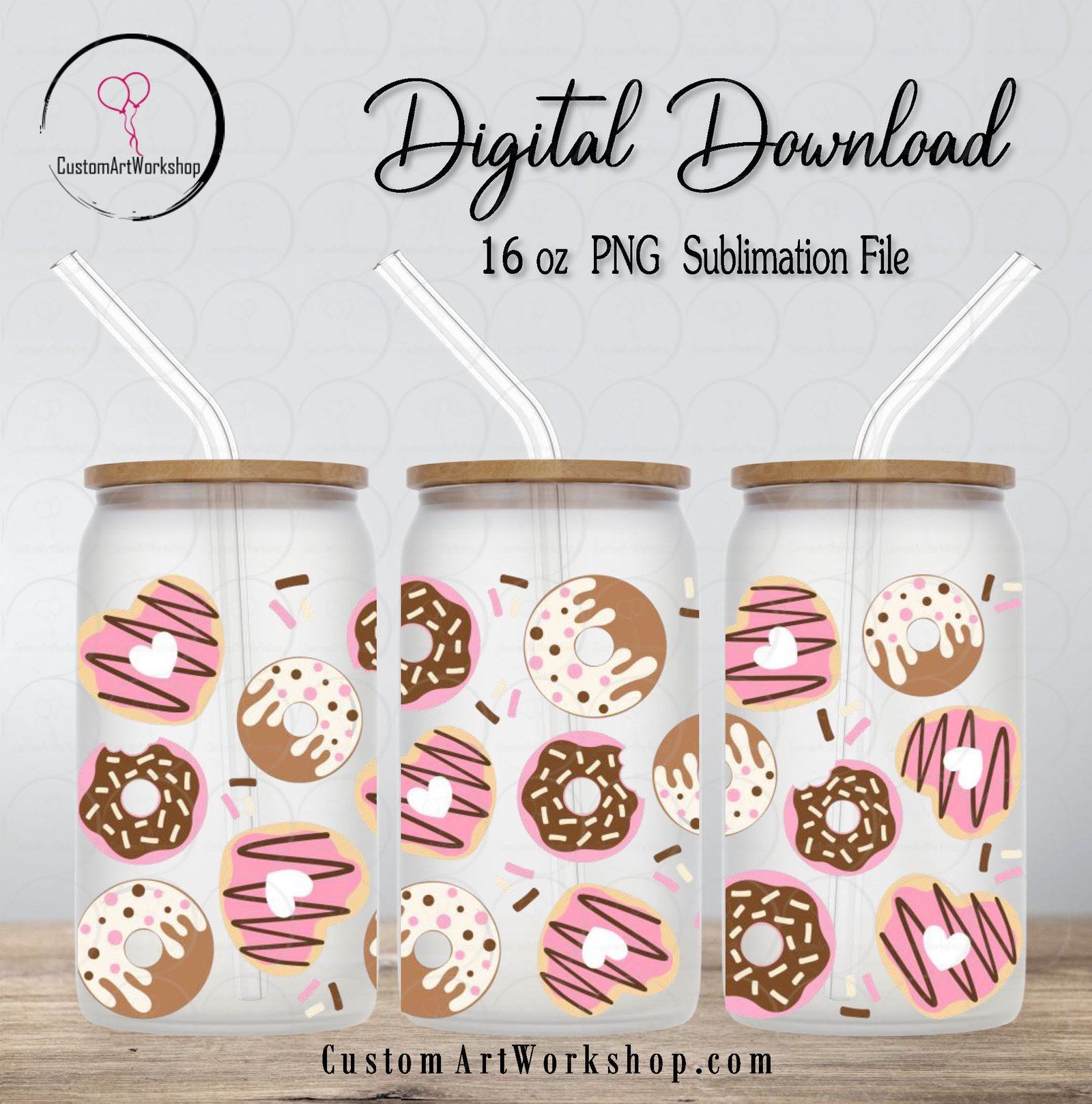 Donut Glass Can Wrap Instant Download