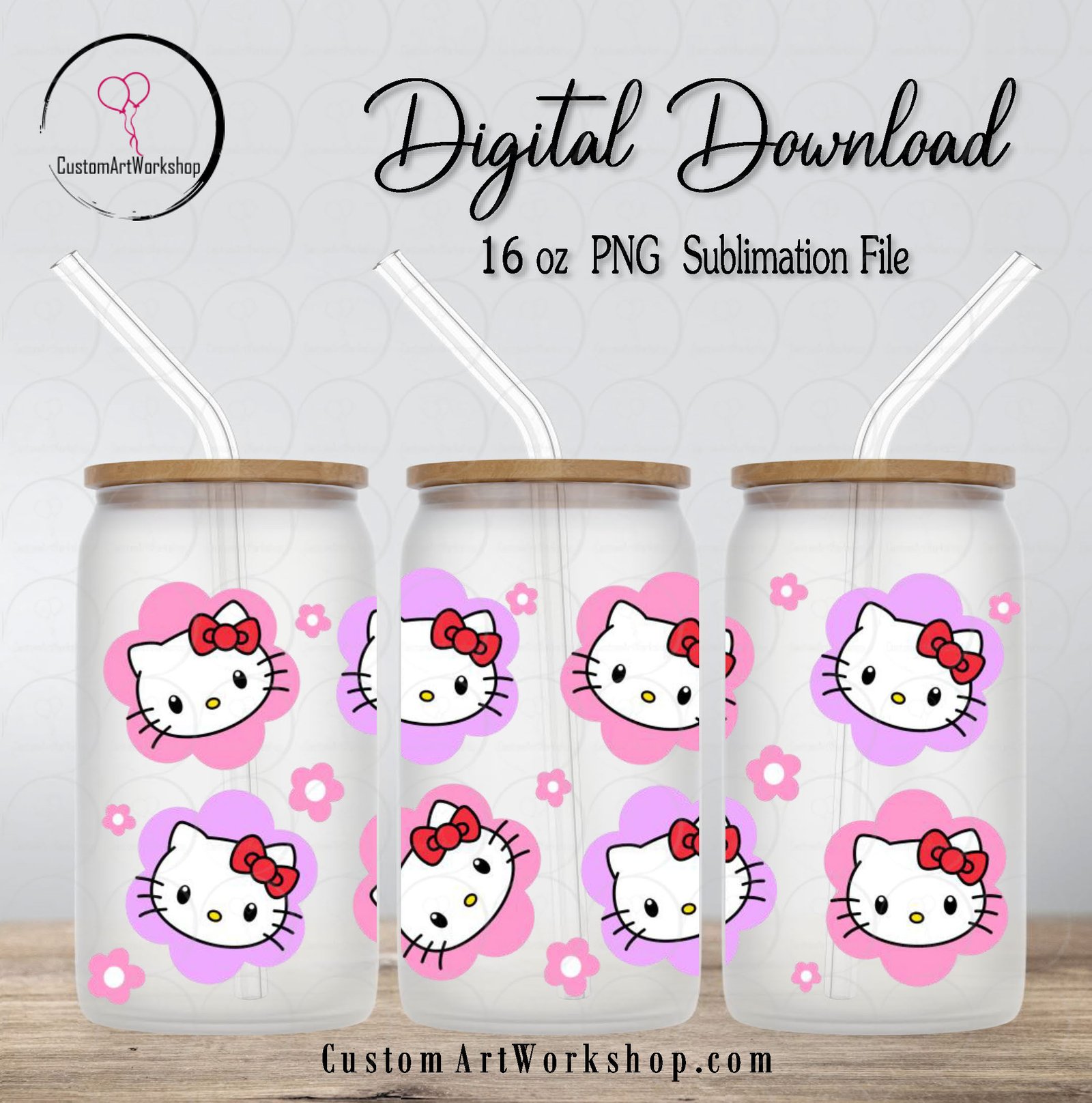 Hello Kitty Floral Glass Can Wrap Instant Download