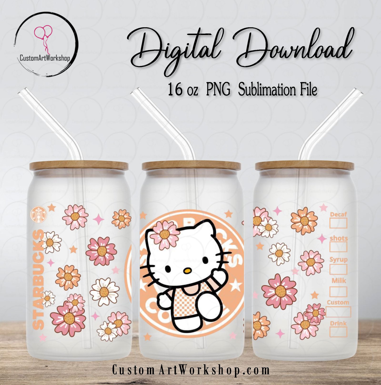 Hello Kitty Spring Peach Starbucks Glass Can Wrap Instant Download