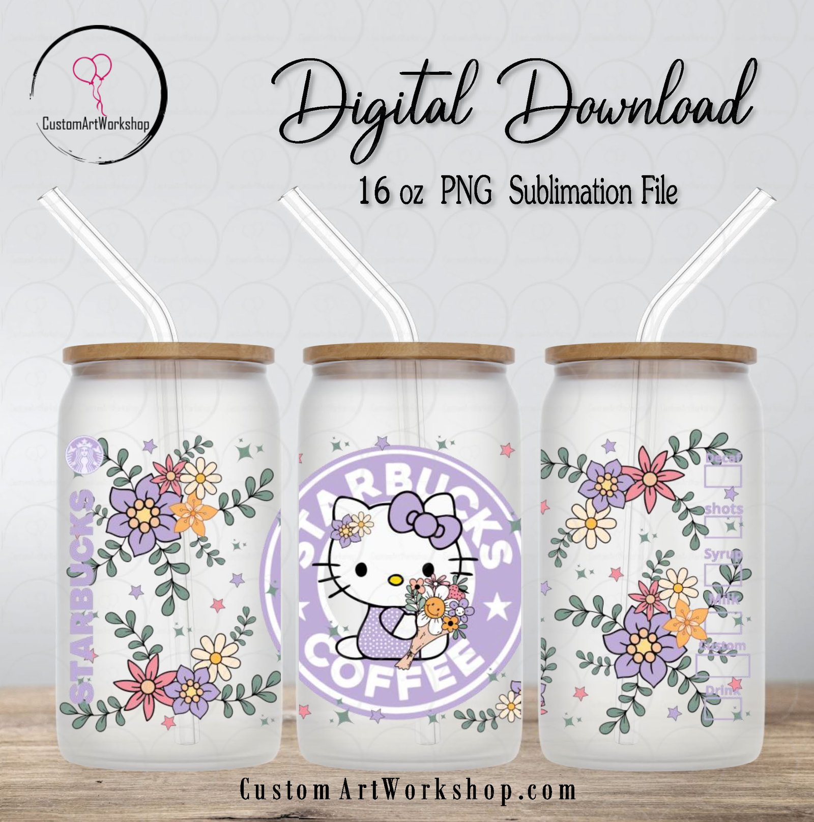 Hello Kitty Spring Purple Starbucks Glass Can Wrap Instant Download