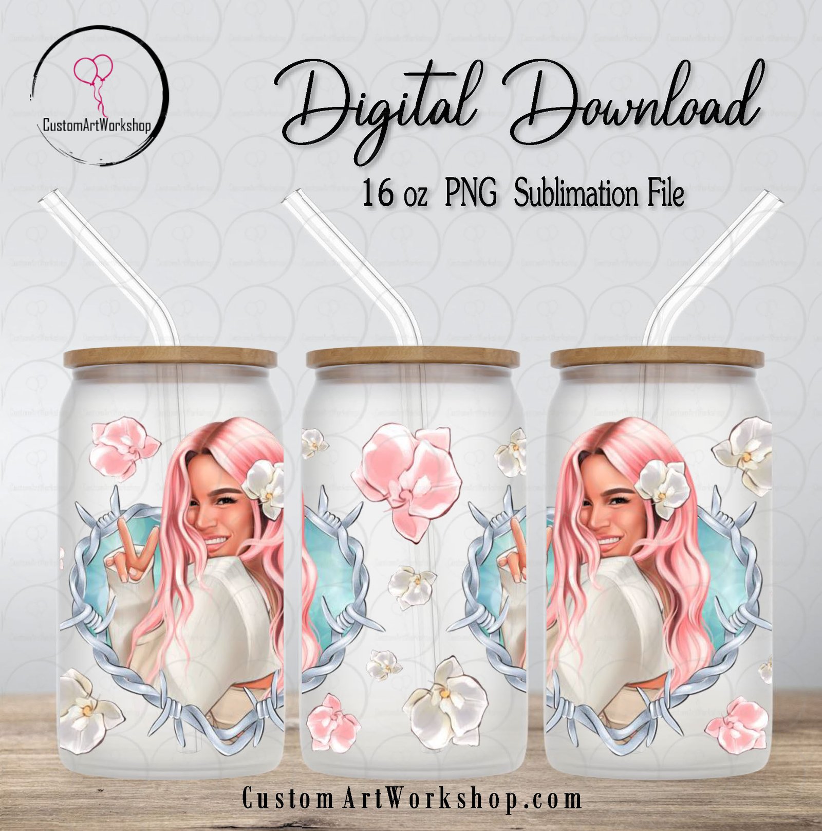 Karol G Heart Pink Hair Glass Can Wrap Instant Download