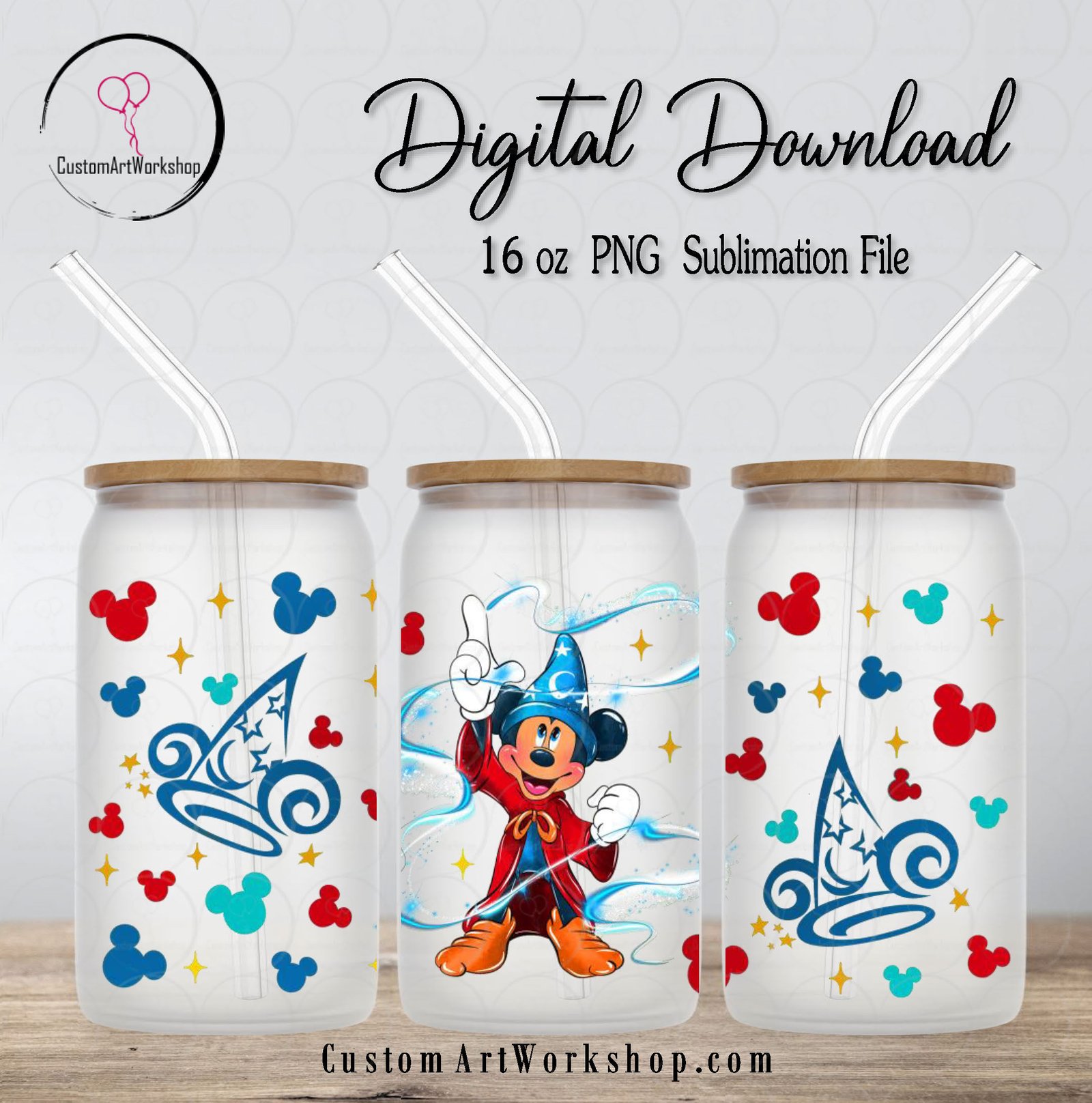 Mickey Sorcerer Wizard Fantasmic Glass Can Wrap Instant Download