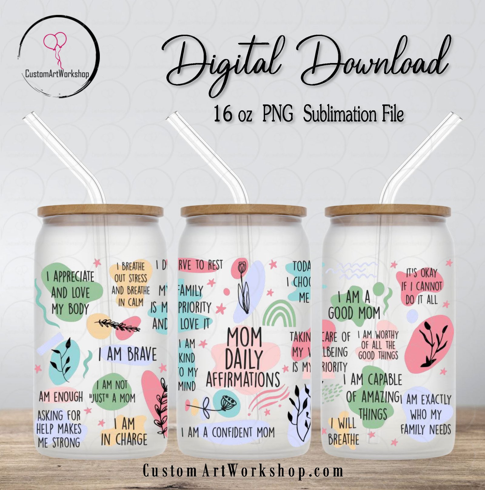 Mom Daily Affirmations Glass Can Wrap Instant Download