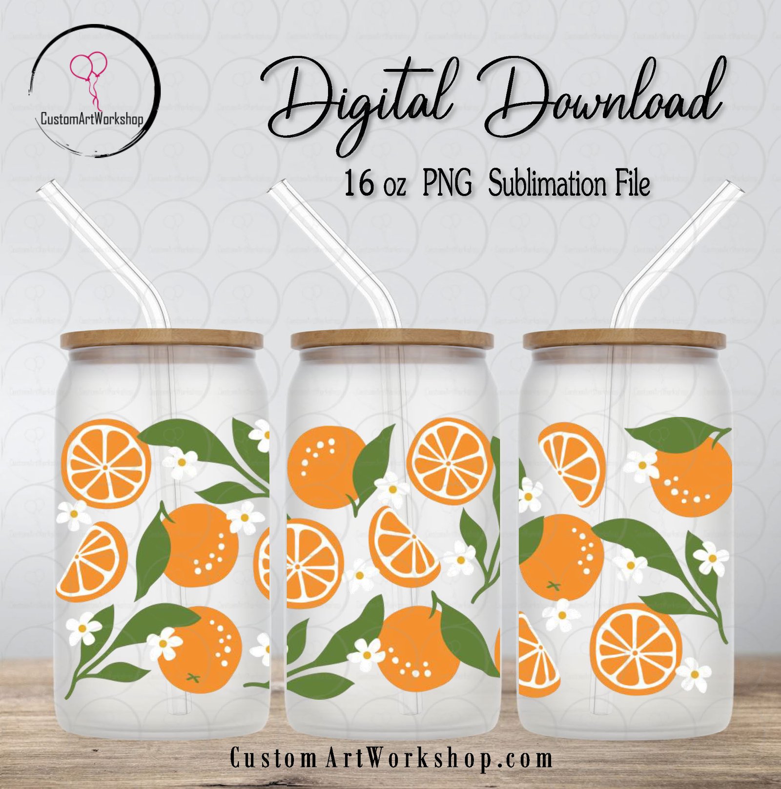 Orange Blossom Glass Can Wrap Instant Download