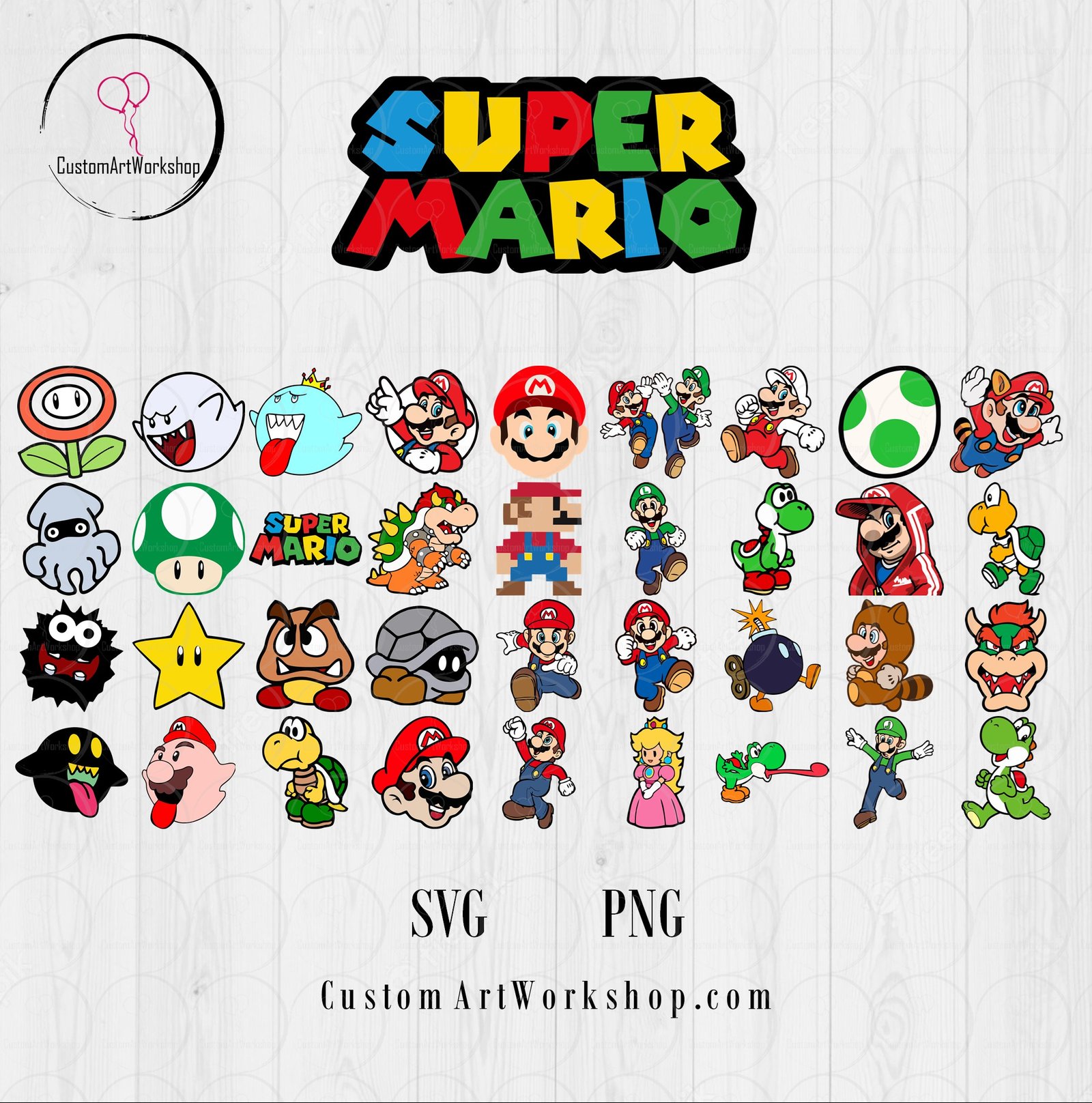 Super Mario Bundle PNG SVG Clipart Instant Download
