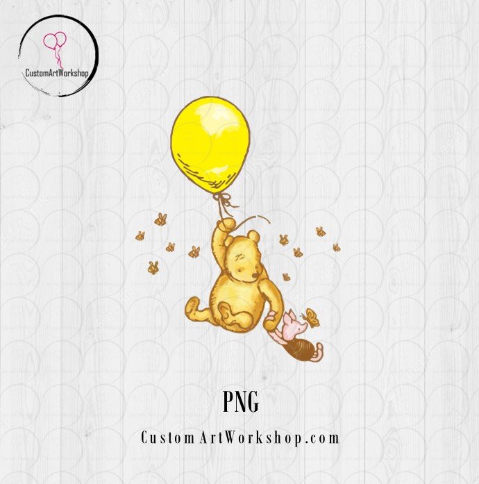 Winnie the Pooh with Yellow Balloon Instant Download
